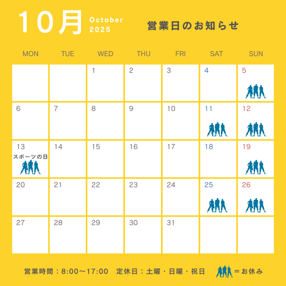 10月の営業日は下記の通りとなります。